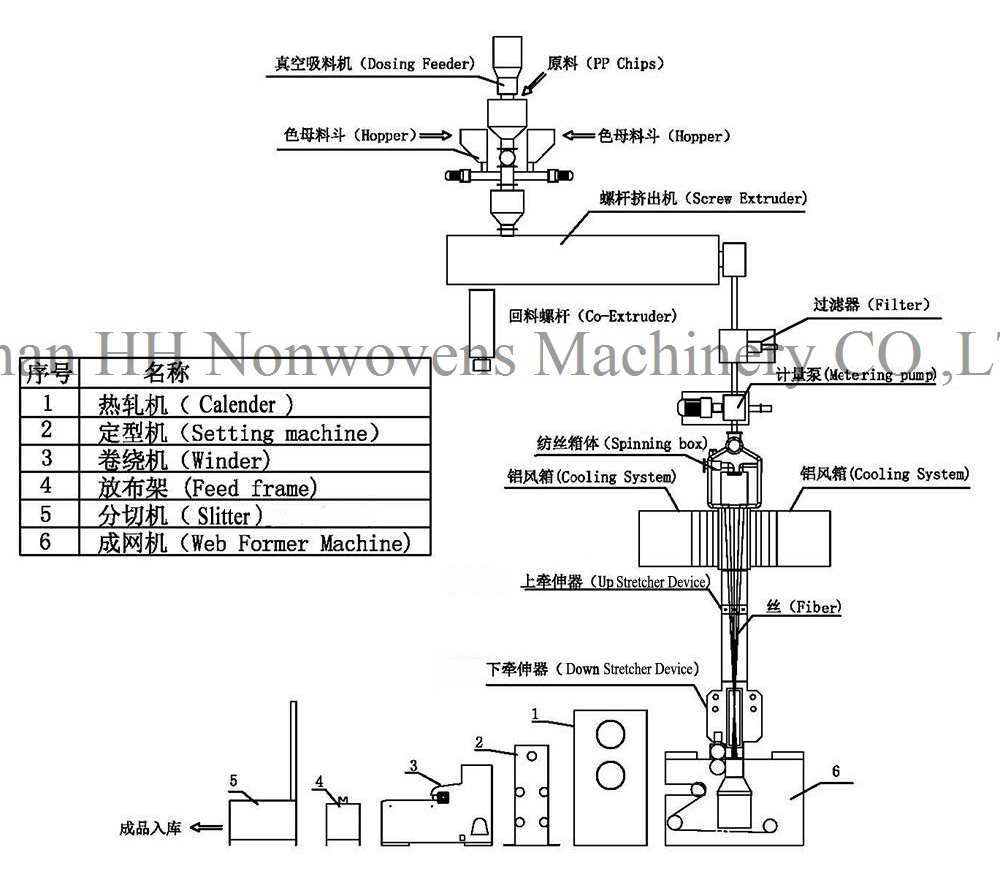 Mașină cu o singură grindă S Spunbond Implică încorporarea de aditivi precum Color Master Lot, Antioxidant și ignifug. Acești aditivi joacă un rol crucial în îmbunătățirea caracteristicilor și performanței țesăturii finale.